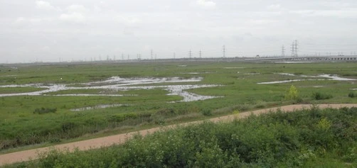 Rainham Marshes covers a vast area alongside the River Thames in East London. It is divided into several distinct areas: the RSPB Reserve, the Ferry Lane end, and the Tip (an active refuse dump for which there is no public access). The river wall offers excellent views of Aveley Bay — the stretch of river between Coldharbour and Purfleet.